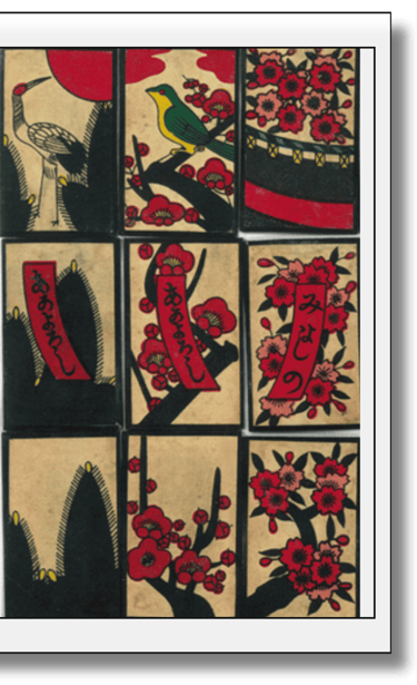 São baralhos de 48 cartas com desenhos de flores originários do início do século XIX. Em vez de ser dividido por 4 naipes com 12 cartas cada, um baralho Hanafuda é dividido por 12 naipes (meses) com 4 cartas cada.