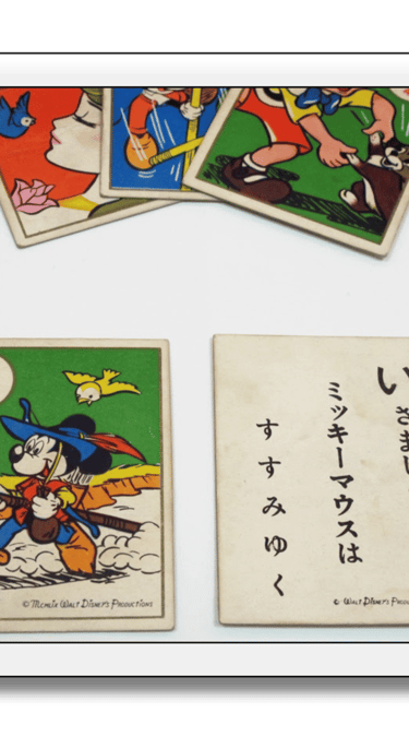 A Nintendo adquiriu a licença dos personagens da Disney na década de 1950 e a utilizou extensivamente ao longo da década de 1960, em diversos jogos, como cartas de Trump, jogos de tabuleiro, um jogo de beisebol e o Iroha Karuta.